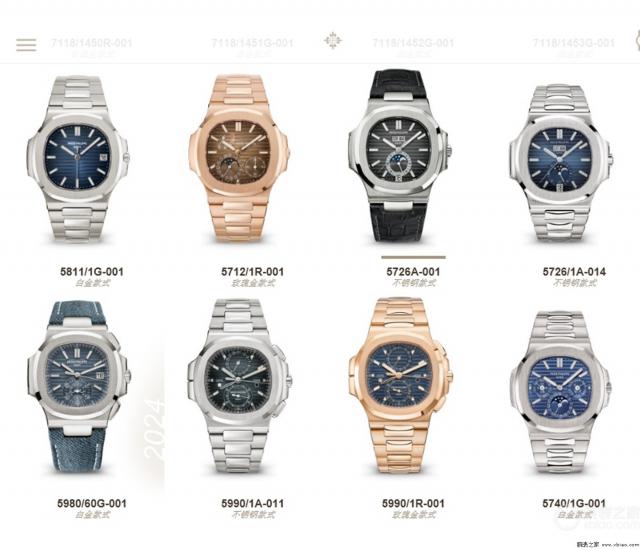 百达翡丽官网,鹦鹉螺男款,销售阵容。可见。 5712A 已经消失。