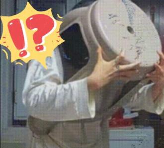 结果头部和手被塑料凳卡住了。