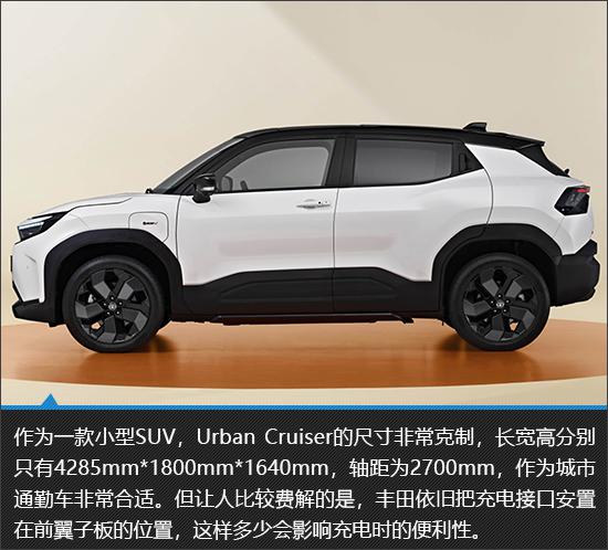 可以看出,在丰田家族设计语言延续的前提下,Urban Cruiser 做了许多更适合自己的设计调整。但是充电口的尴尬位置,似乎也预示着其纯电平台仍然相对落后。