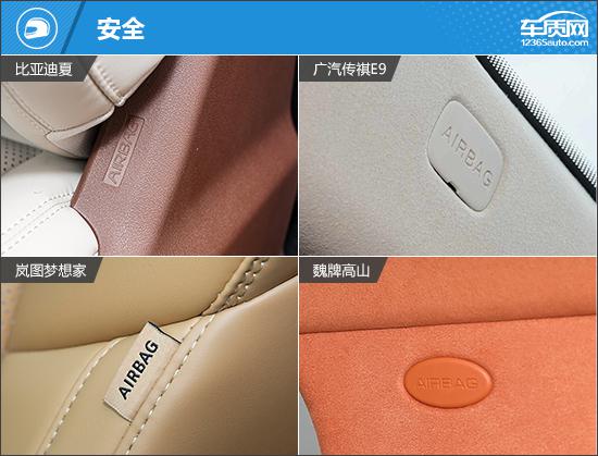 在安全配置方面,比亚迪夏继续保持领先地位,独家驾驶膝部安全气囊和前排中间安全气囊,全面保障汽车安全。相比之下,传祺 E9 主动式安全配置缺失较多,表现明显不如其它三款车型。