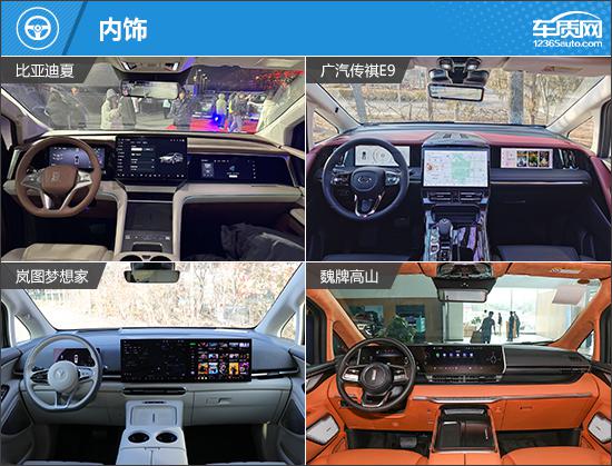 这次推荐的都是市场上比较流行的自主品牌车型,分别是比亚迪夏、广汽传祺。 E9(以下简称:传祺 E9)、岚图梦想家(以下简称梦想家)和魏牌高山。在这些车型中,比亚迪夏是最近刚刚上市的新车型,传祺 E9 而且梦想家都有比较好的市场关注度,魏牌高山是这个领域的老牌将领。本论文将尽量选择四款车中价格相近的车进行对比,看看它们的表现如何。(因为现在照片数量很少,所以有些车型的照片并不是相应的特定风格)