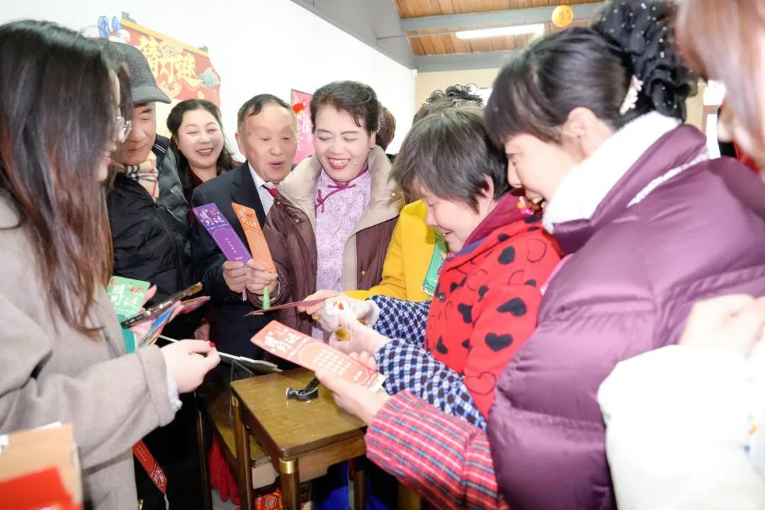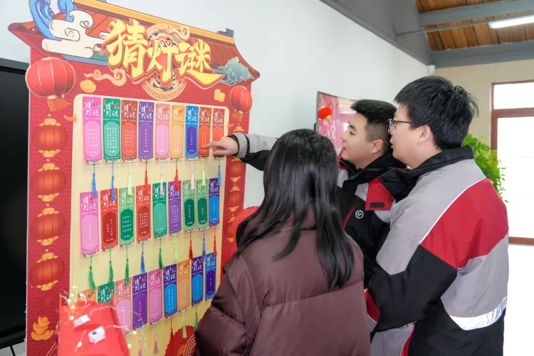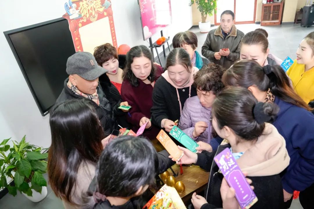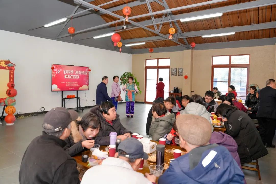 除了包饺子,现场还组织了传统节目——在灯笼上解谜。会场里挂满了五颜六色的灯笼和谜语条。村民们三五成群地猜谜语,气氛非常热闹。大家互相配合,开动脑筋,积极讨论,解开一个又一个谜团,得到精致的小礼物。现场充满了欢笑和欢乐。村民们在猜谜的过程中感到快乐,获得了真诚而深厚的友谊。