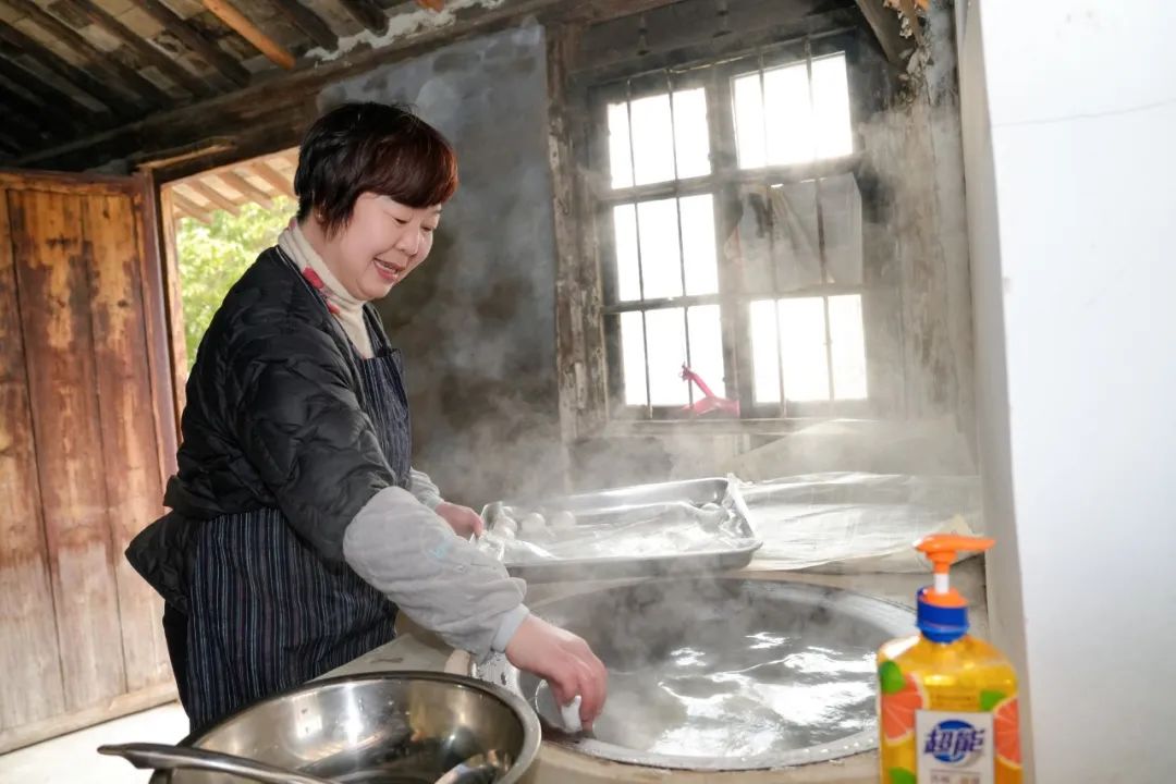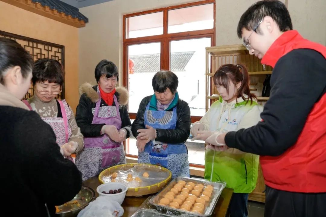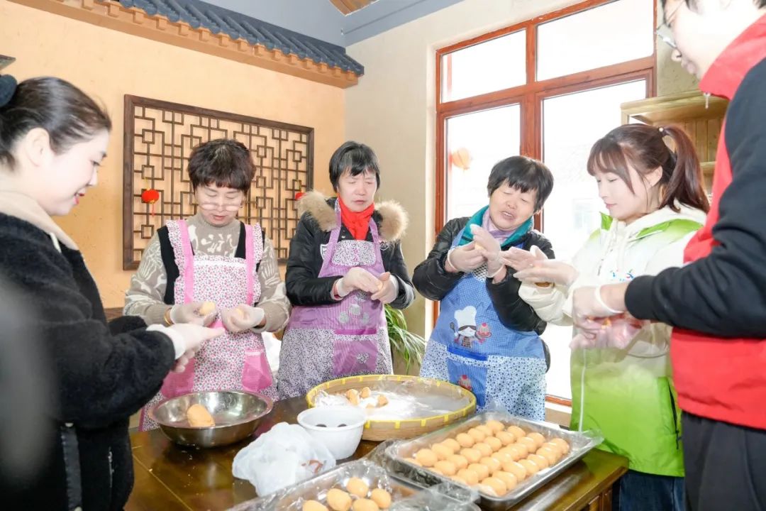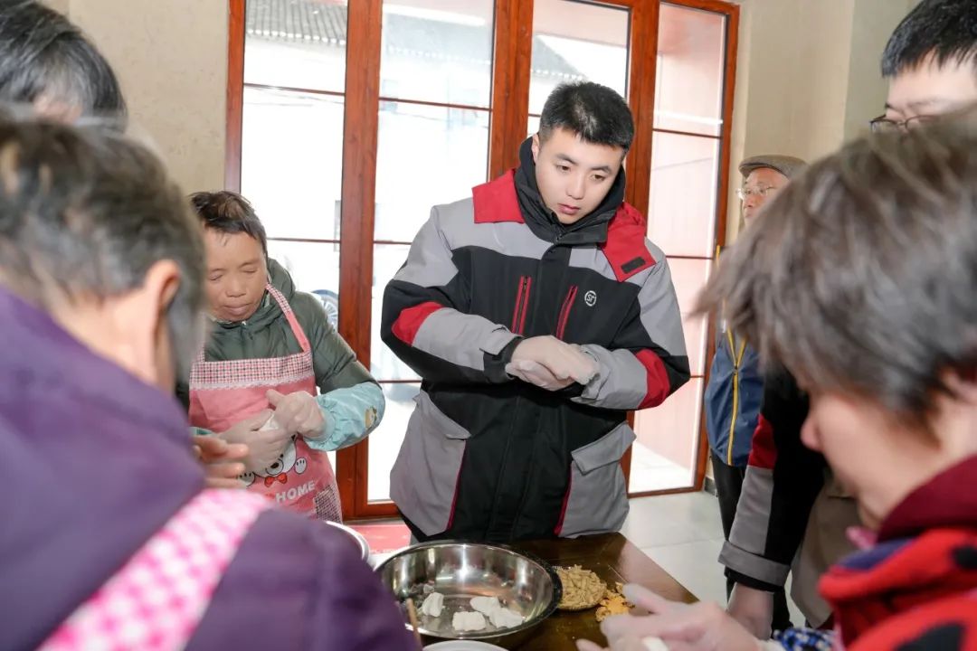 然后是包饺子的快乐民俗活动,邀请村民们现场制作元宵节。每个人都戴上手套,把馅料放入水中浸泡,然后放入糯米粉中滚动。圆圆的元宵节诞生在每个人的笑声中。小饺子温暖了人们的心。看着自己做的元宵节,村民们的脸上充满了幸福的笑容。