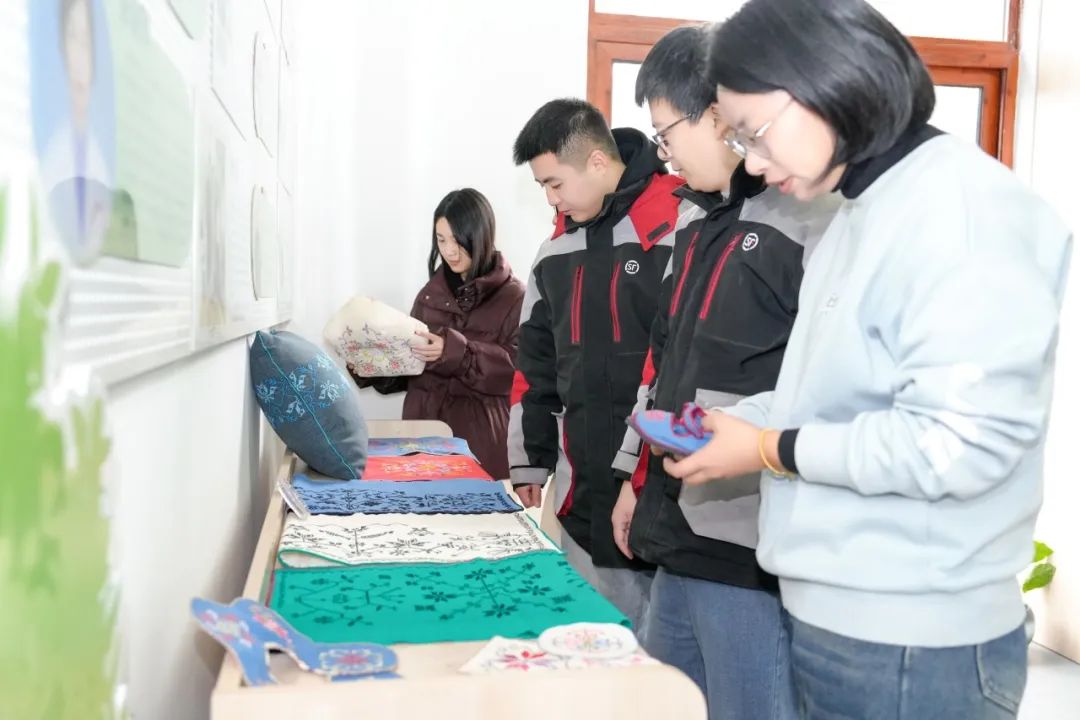 现场还展示了方巾、枕头、杯垫等经典罗泾十字看花作品。图案简单明了,兼顾了象形和抽象色彩,吸引了很多浏南村民和新就业人士,一起感受到了市级非物质文化遗产罗泾十字挑花的魅力。