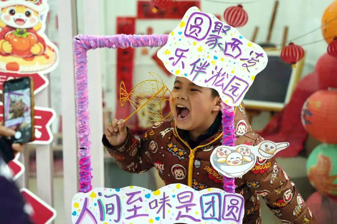 “这条小蛇是我设计的。上面的柿子元素意味着一切都很顺利。还有一个可爱的小饺子,适合元宵节。”五年级学生张景云设计的艺术设备成为观众关注的焦点。以蛇年为元素,以红色为背景,充满新年元素。据张景云介绍,制作由街区内的老师和高年级志愿者完成。