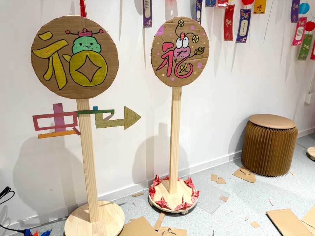 如果回收的废纸板变成了含有蛇年元素、元宵节元素的艺术装置,就会吸引很多居民观看打卡。