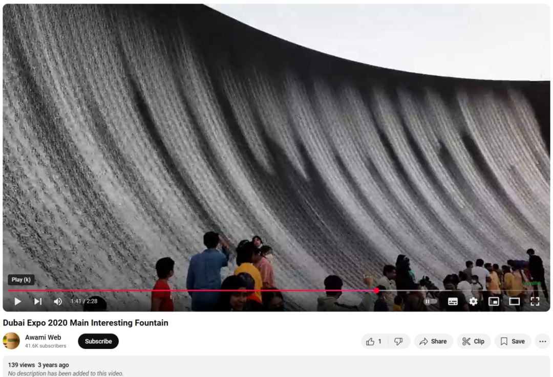 YouTube平台于2022年发布了一段题为《2020年迪拜世博会主要特色喷泉》的视频。