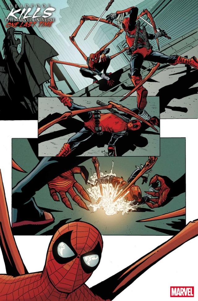 这部漫画的标题是《死水屠杀漫威宇宙:最后一次》(Deadpool Kills the Marvel Universe One Last Time),这是《死水杀死漫威宇宙》三部曲的最后一章,编剧卡伦・邦恩(Cullen Bunn)与画家达利博尔合作・塔拉吉奇(Dalibor Talaji ć)强势回归,共同创作这部史诗级的作品,被称为“史上最宏伟的死侍故事”。