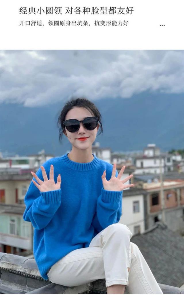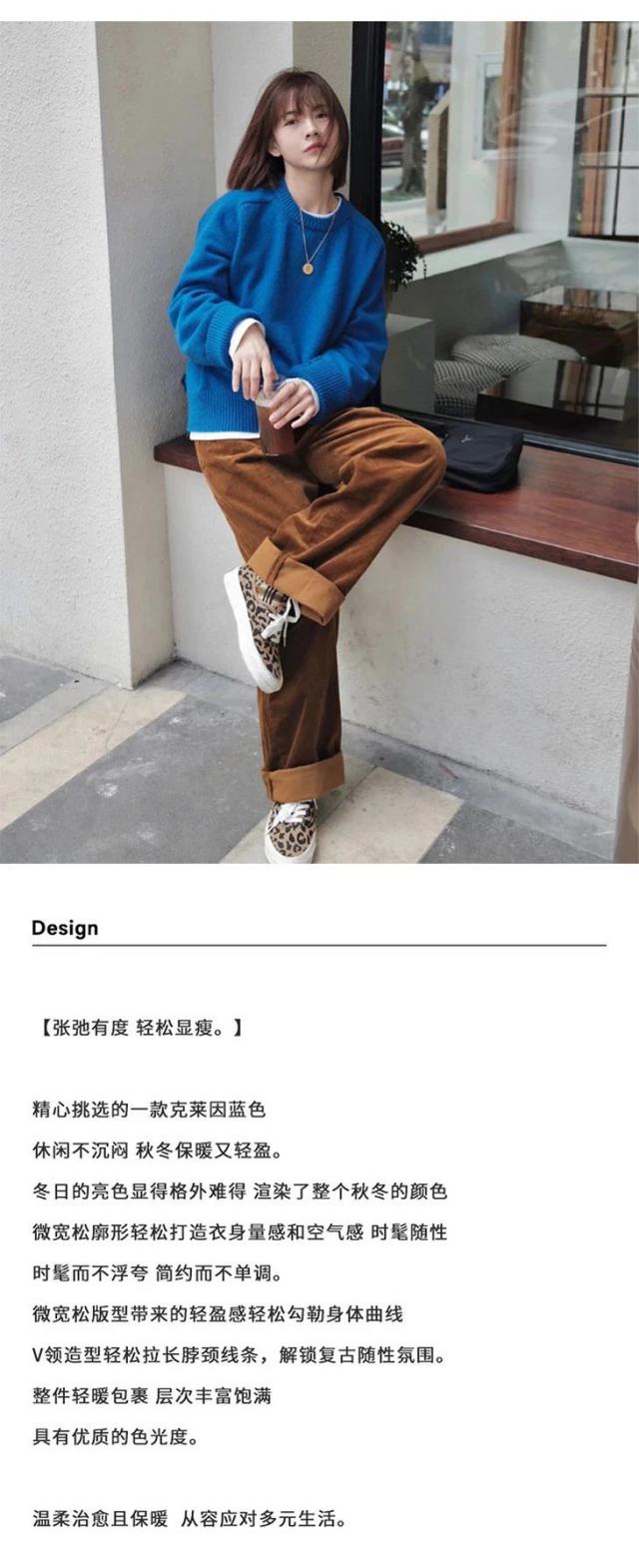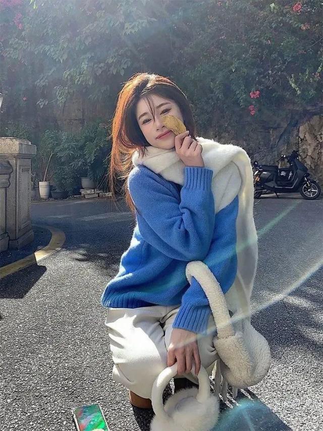 蓝毛衣在时尚界一直备受追捧。特别是在低沉的冬天来点清爽的蓝色,给人一种眼前一亮的感觉。