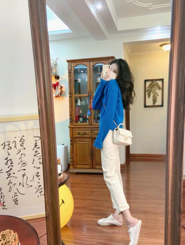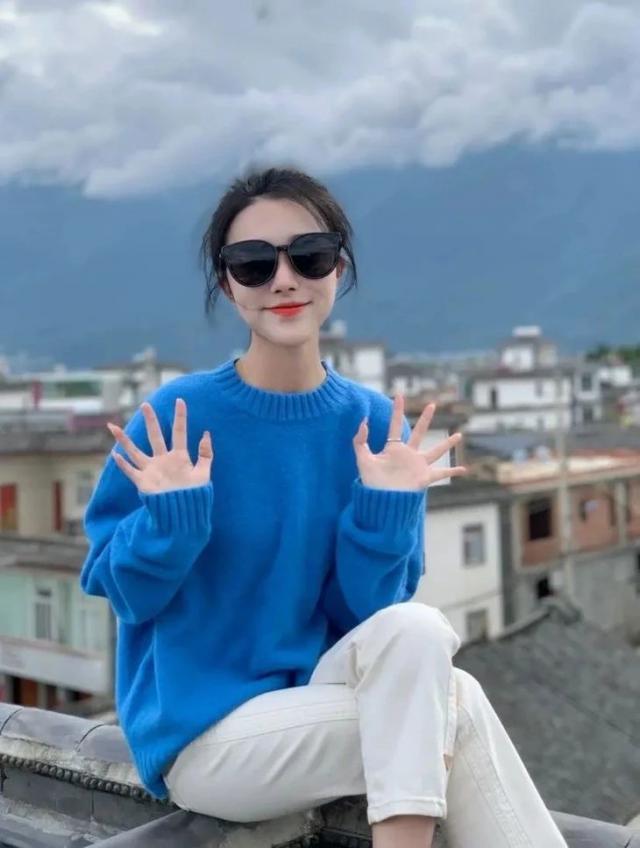 “蓝毛衣”是一种很经典的服饰搭配,它给人一种干净、高级的感觉。
