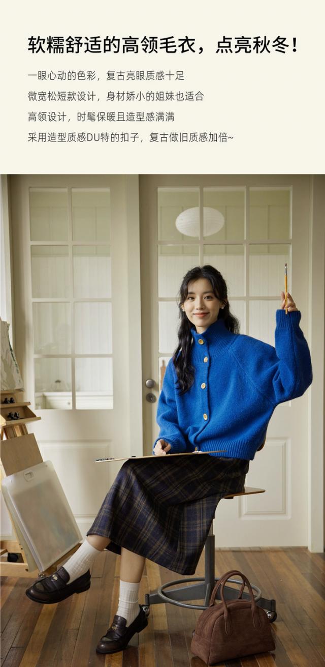 高领子设计,天冷脖子不觉得冷,还可以让脸看起来清秀小巧。