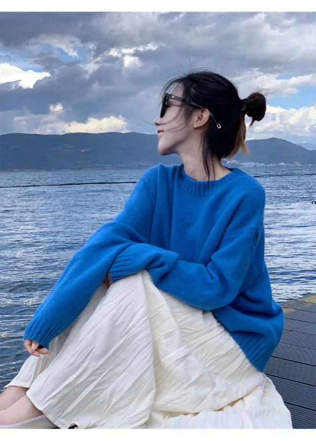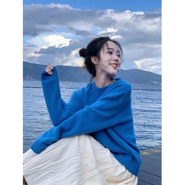与“美拉德”相比,它更低调、更克制,但不失优雅和品味。尤其是冬天,穿蓝色毛衣不仅能保暖,还能让你的气质更干净更高级。