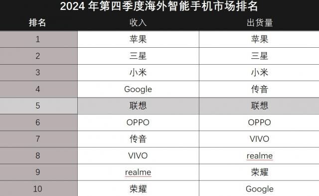 2 月 11 国际数据公司日 IDC 最近公布了国外市场智能手机的最新排名,联想成功跻身前五,并取得了营收和出货量双前五的好成绩。
