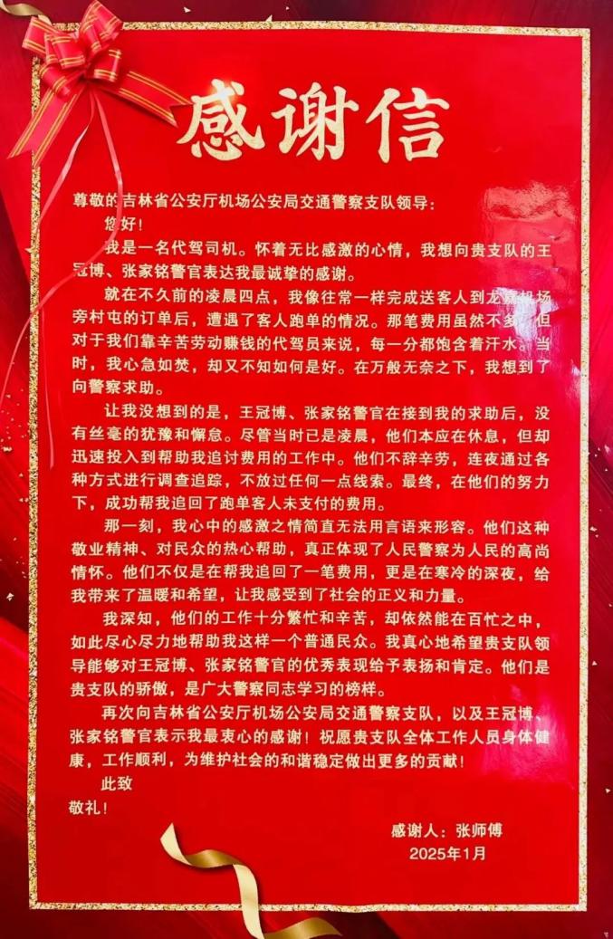 最近,司机张师傅像往常一样把客人送到了长春龙嘉国际机场。服务完成后,客人悄悄离开,没有完成微信支付。面对深夜的寒风和无奈,张师傅抱着试一试的心态向机场交警求助。