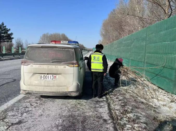 2月11日14时许,省公安厅交通管理总队高速公路长春支队巡逻五大队民警,巡逻至596路 在公里处,发现一位老人在高速公路护栏外捡木柴,完全无视旁边疾驰而过的车辆,存在很大的安全隐患。