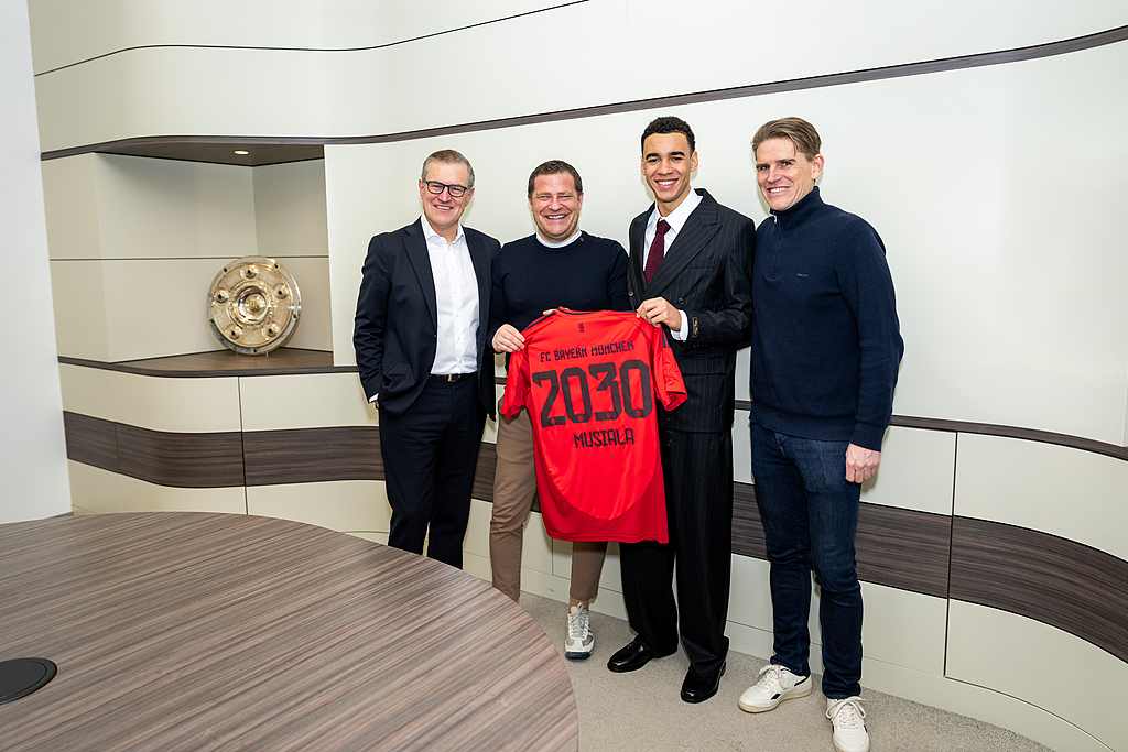 拜仁慕尼黑于2月14日正式宣布,贾马尔-穆夏拉与球队续约至2030年6月。据媒体报道,穆夏拉税前年薪达2500万欧元,另外违约金为1.75亿欧元。