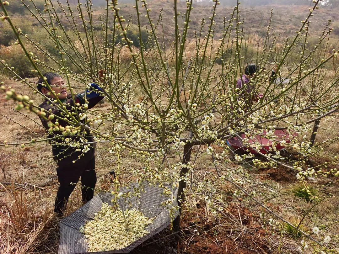 目前,在休宁县商山镇上井村村民许春如的绿梅园里,绿梅正在含苞待放。村民们正在抓住晴天,收获绿梅花蕾,制作花茶,增加收入。(张和平 吴月秀)