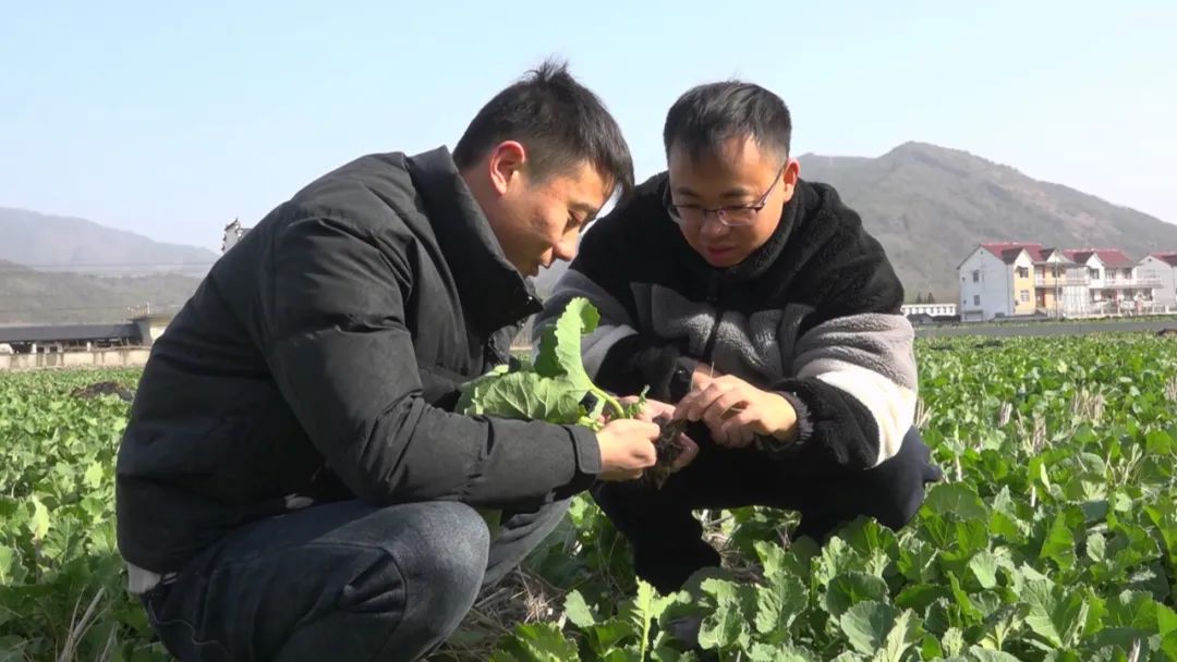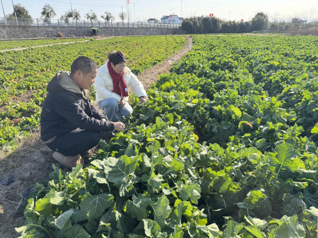 最近,在祁门县安凌镇平革家庭农场,油菜正在健康生长。农业技术专家在田间仔细检查油菜的生长情况,并向种植者详细讲解了低温寒流下农作物生产的控制措施,帮助他们在低温下做好油菜的控制和保护工作。(今天祁门)