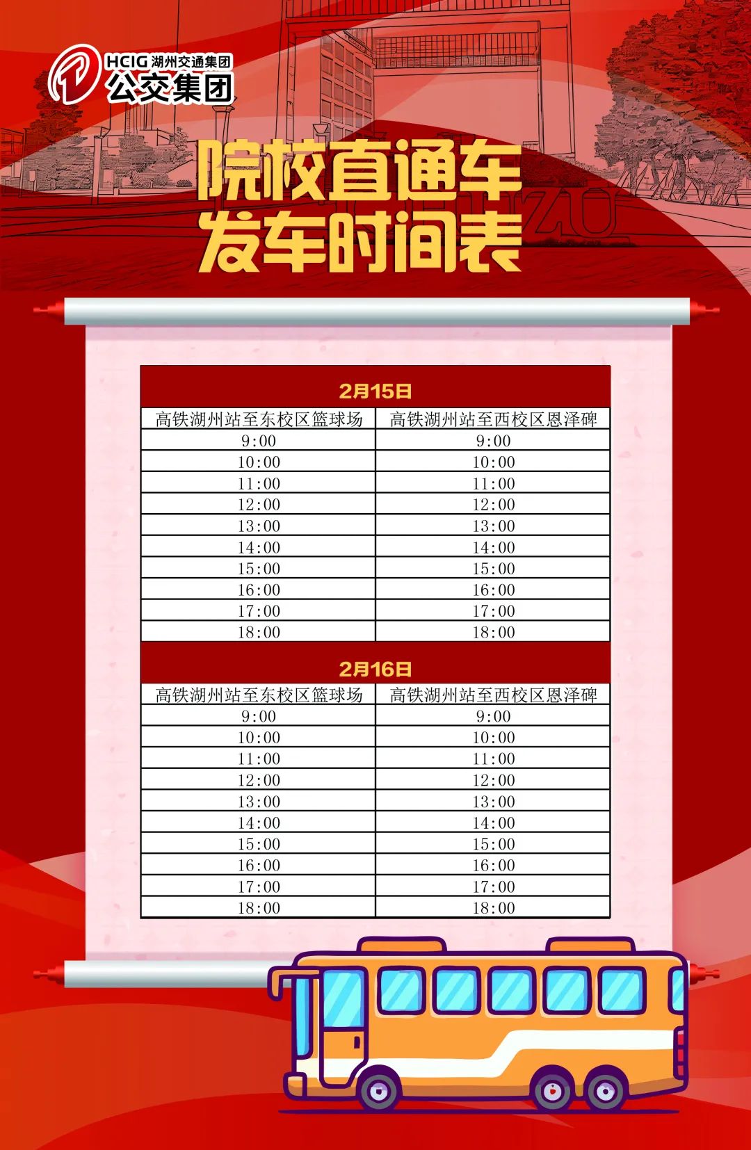 停车站:高铁湖州站,湖职院北门(高富路)、师院东校区篮球场