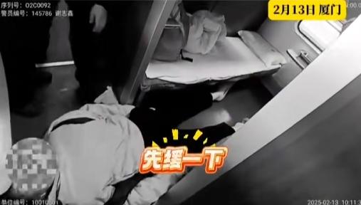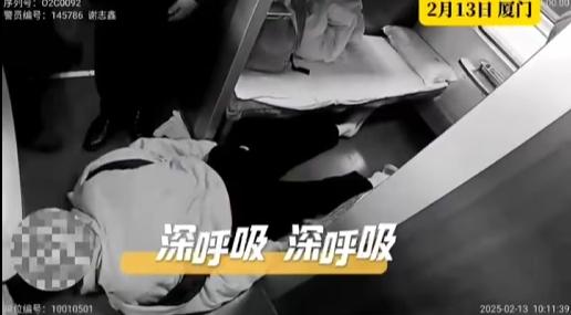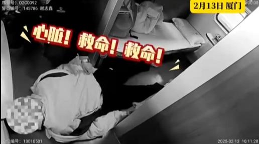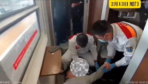 该男子乘客表示心脏不适,呼吸不畅,手脚麻木。为了保持乘客的顺利呼吸,警察和列车长共同努力将该男子调整到平躺身体,并帮助他解开衣服,调整呼吸。他们帮忙搓手掌,按虎口,拍肘窝。
