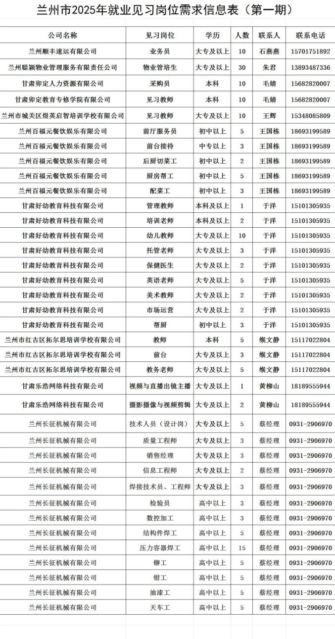 原标题:2025年兰州市第一期就业见习岗位信息发布