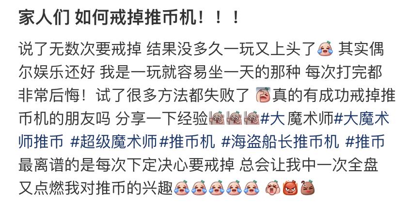 而且评论区最炼狱的笑话也许是 “以毒攻毒”:自己买个推币机在家玩,玩腻了就行了。