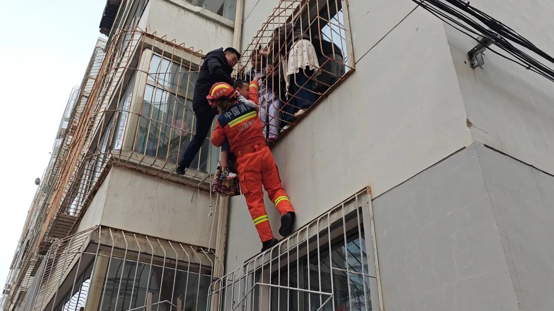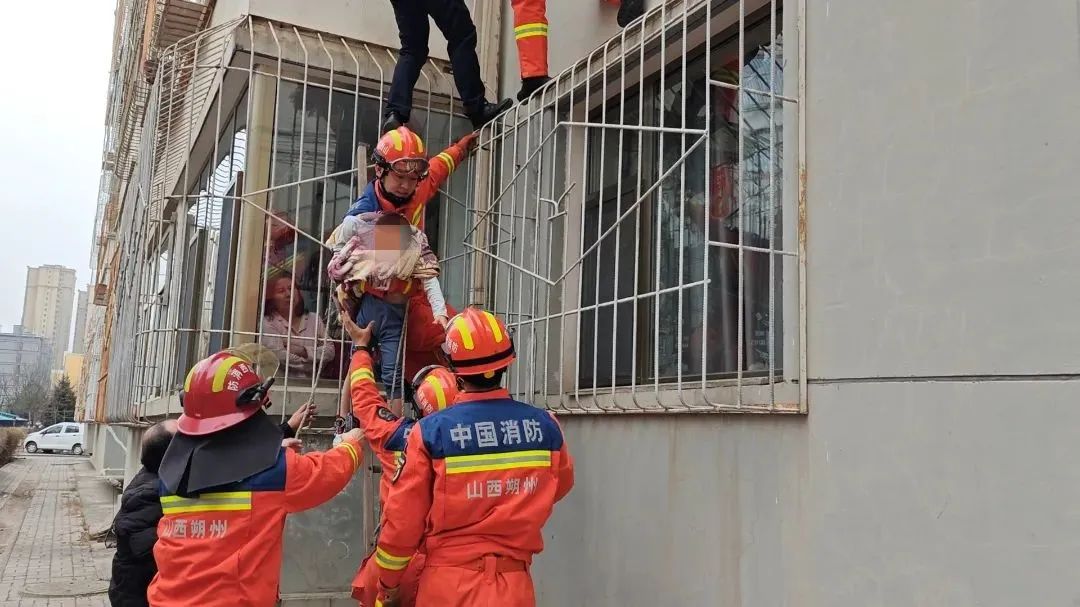 惊心动魄!朔州一名男孩身体悬空,被卡2楼保护窗…