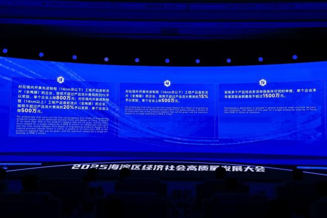 2 月 14 日本,《中关村科学城集成电路流片补贴申报指南》(以下简称《申报指南》) 2025 海淀区经济社会优质发展会议正式发布,支持集成电路设计企业多项目,面向海淀区从事集成电路设计业务的企业。(MPW)或者第一轮工程商品(全掩膜),单个企业补贴最高。 1500 万。