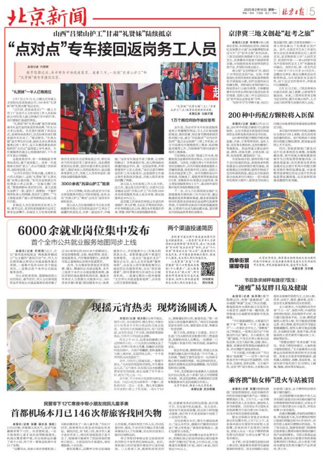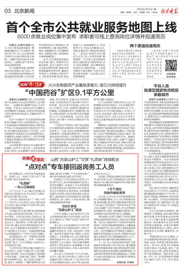 2 月 6 当天晚上,房山区北京东方家政服务有限公司培训基地35 名为“吕梁山护士”的“点对点”返程专车顺利抵达北京。据房山区人力资源和社会保障局工作人员介绍,近年来,吕梁市通过多方合作,成功运输了包括“吕梁山护士”在内的 3000 多名家政服务员进入北京市场,稳定就业率达到 90% 以上。