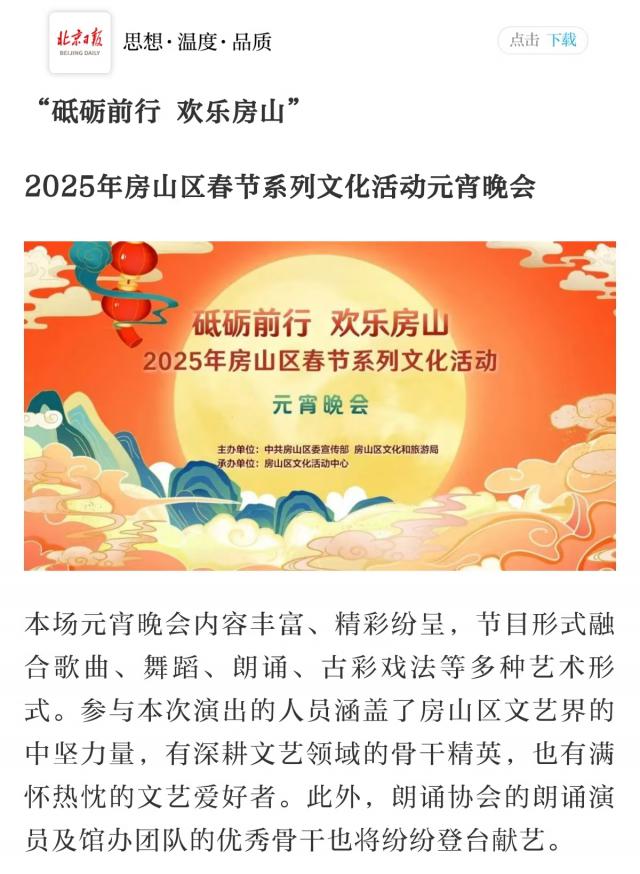 元宵节期间,房山区各种文化旅游活动,精彩不断,大戏不断。