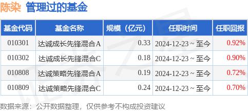 2025年证券之星消息 年 2 月 15 当天,达诚腾益债券(017045)发布公告,增聘陈染为基金经理,就职日期自 2025 年 2 月 15 日起,王栋不再担任该基金基金经理,离职日期为 2025 年 2 月 15 当天,陈染益债券(017045)基金经理为变更后达诚腾益债券 , 陈佶。截至 2025 年 2 月 14 当天,达诚腾益债券净值为 与前一天相比,1.1146上升。 最近一年0.02%上涨 6.38%。