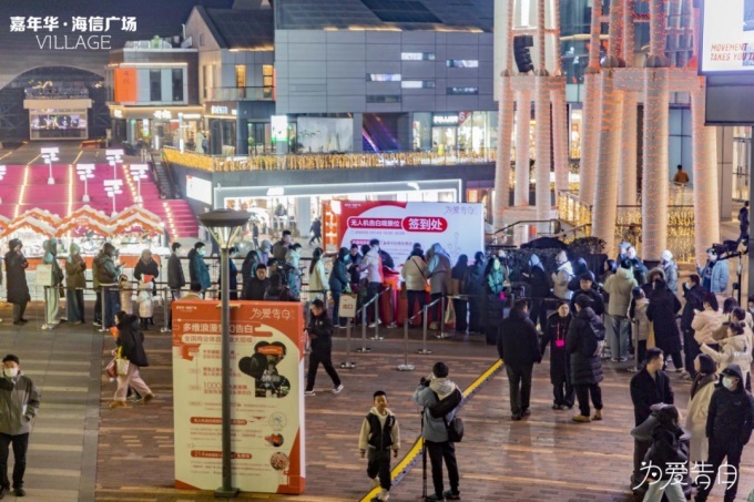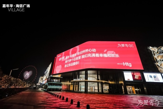 在全国范围内,青岛嘉年华·海信广场VILLAGE上演了全国商业体最大规模的告白盛会
