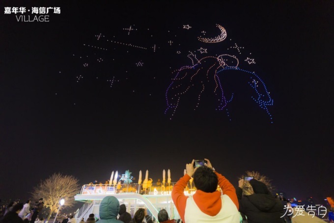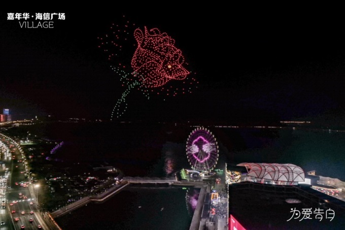 上千架无人机定制情人形象表白,上演璀璨星河秀。