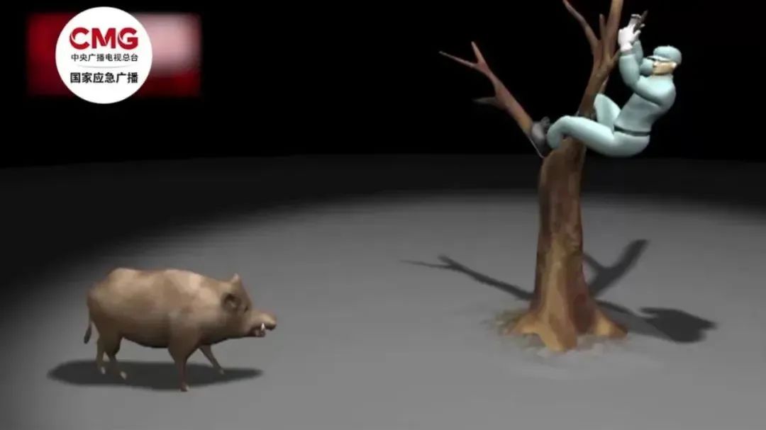 快速寻找可以遮挡人体的地方,也就是阻碍物、树木等,以免被山猪攻击。