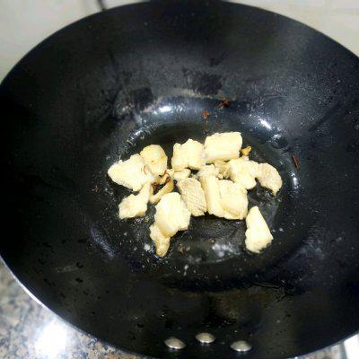 4、锅内下油,加入切好的五花肉爆锅出油脂。
