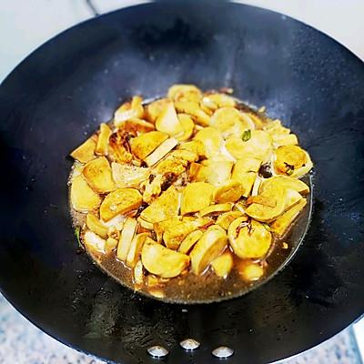 7、加入不含食材的清水,加入适量的盐盖焖。 15 分钟。半途而废,翻炒一下。时间到了,再撒上适当的鸡精,翻炒即可出锅。