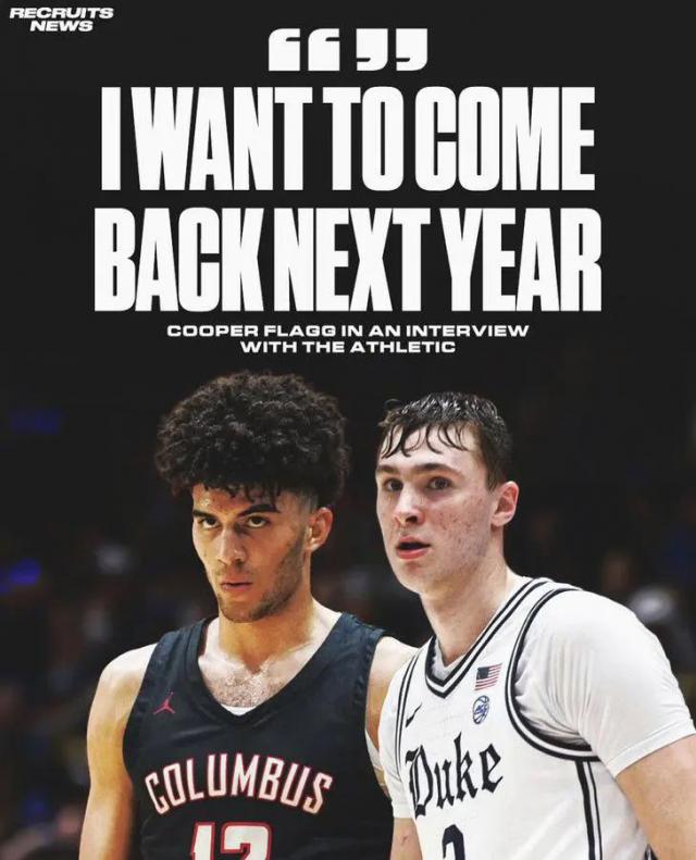 很难想象,全明星周末,一个星光闪闪的时刻,竟然被一个大学生球员抢到了各大版本的头条。今天,2025年 届状元大热库珀 - 在接受采访时,弗拉格说:“我想在明年再玩一年。 NCAA,我一直渴望打大学联赛,代表学校夺得全国冠军更是我的梦想。”