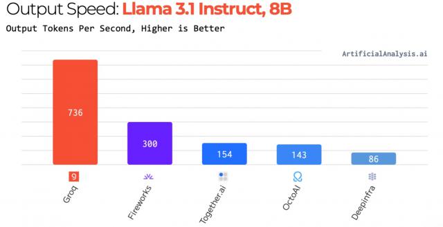 在 Llama 2-70B 在在推理任务时,LPU 该系统每秒都在进行 300 token 与英伟达达相比,吞吐量 H100 实现 10 倍性能提升,单位推理成本降低 80%。在 Llama 3.1-8B 在在推理任务时,LPU 该系统每秒进行一次 736 token 的吞吐量。