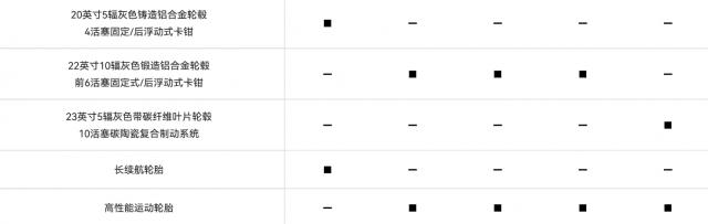 居然是 22 寸大轮毂 6 活塞卡钳,顶配还给活塞卡钳 23 寸 10 现在只有活塞碳陶盘, 20 寸轮毂及区域 4 活塞卡钳。