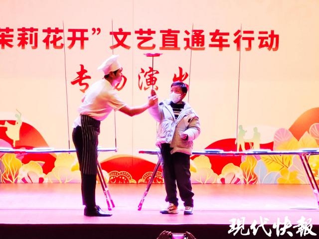 现代化快报(记者) 陈敏 文 / 摄)2 月 15 当天晚上,“茉莉花开”文艺直通车走进无锡新吴区梅里古镇,江苏省演艺集团剧院演员表演,为当地居民提供艺术盛宴。在现场,民间音乐合奏、川剧变脸、魔术杂技、戏剧等精彩表演轮番上演,跌宕起伏,赢得了观众的掌声。