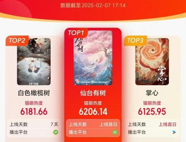 由邓为主演的古装剧《仙台有树》在播出日冲上榜单第一,压制了刘诗诗主演的《掌心》。刘诗诗有很大的粉丝基础,但 85 后流量花旦的一个成员,《仙台有树》里没有流量演员,女主角向涵之也是“三里屯三姐妹”之一。她一直被嘲笑长相普通,以前也没有出圈的作品,所以很多网友质疑她是一个被资本硬塞的关系户。
