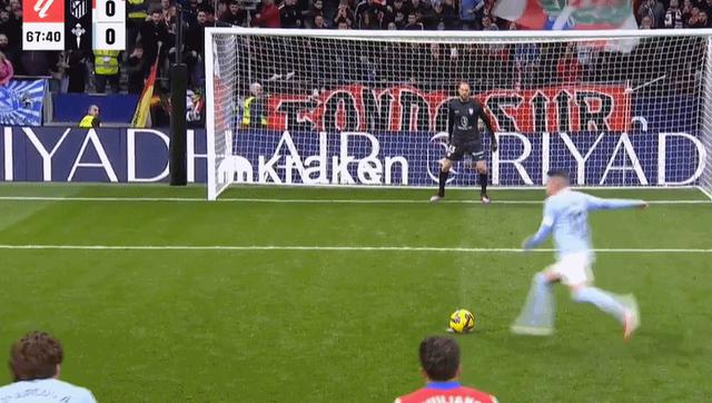 后半场第 51 几分钟后,塞尔塔右路进攻,卡雷拉在进球后立即前进,奥布拉克仍然没有失球。西蒙尼看到球队士气低落,立即煽动球迷传来更多的欢呼声。第一 54 分钟,德保罗右路高速前插推进横敲,马科斯 - 被瓜伊塔带走的略伦特劲射击太正; 68 分钟,前队友伊格莱西亚斯在武磊禁区的护球被勒诺尔芒踩倒在地,裁判立即哨响判罚点球;老将阿斯帕斯稳定主罚,0:1!