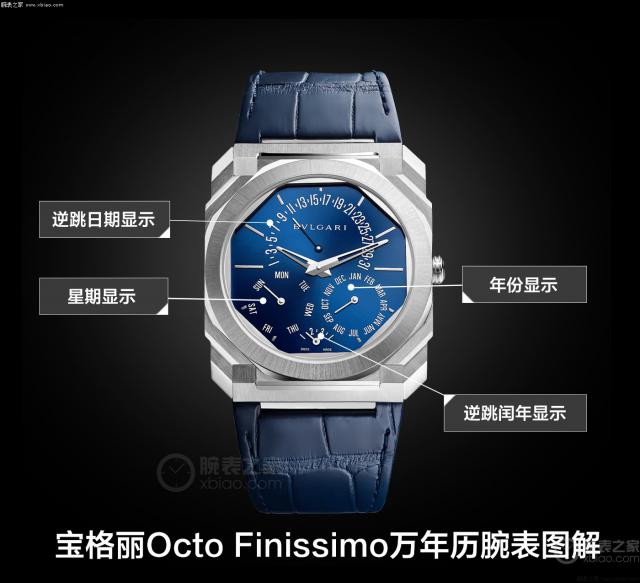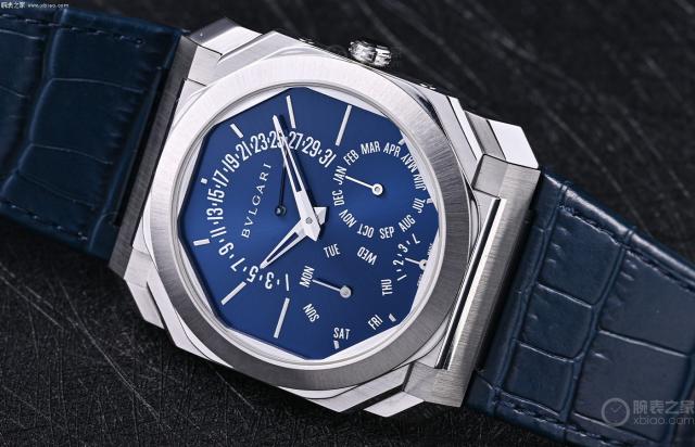 八角形和超薄两个“基本元素”, Octo Finissimo 系列腕表。在此基础上,Octo Finissimo 该系列结合了不同的手表功能。例如小秒针显示,记时功能,以及文章开头提到的万年历功能。下一步,我们将重点关注它。 Octo Finissimo 具体表现为万年历手表(型号:103463)。