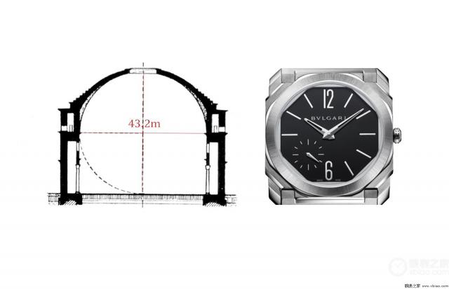 (表壳造型灵感来源于罗马建筑的圆形和正方形)