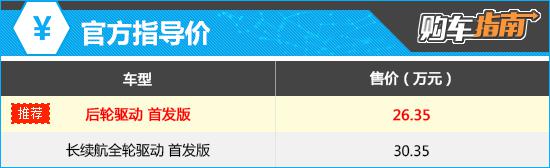 参考价为 26.35 万的后驱首发版是整个系统中最入门的版本,但是不要看最低的配置,就像 LED 灯源远 / 近光,自适应远近光,电动后备箱,电池预加热,前排座椅加热 / 通风等基本功能均有配置,能有效提高日常汽车的便利性和舒适性。并且还标配了十分丰富的智能和主要性。 / 被动式安全配置,可谓入门即高配。此外,593km 纯电续航也能基本满足大多数消费者对汽车的需求。所以,后驱首发版是这次推荐的车型。