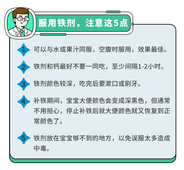 虽然食物能有效地补铁,严重缺铁的婴儿,还是在医生的指导下,服用铁剂。: