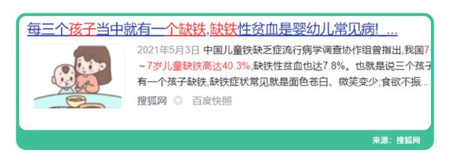 6 一个月后,辅食不及时添加,就会导致铁元素缺乏,1 年龄小于缺铁性贫血的婴儿高达 22-31%。