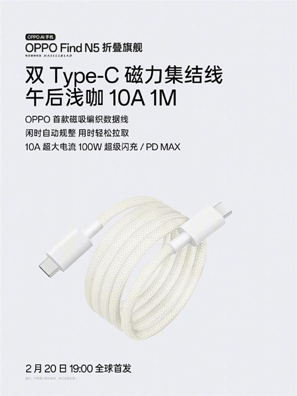 快科技 2 月 15 日消息,今天 OPPO 宣布,其第一条磁性编织数据线将在 2 月 20 日 19 点发布。