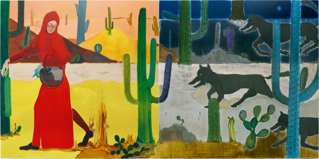 “小红小红帽”是创作于2019-2023年的“童话系列”的关键支柱。在此期间,汪一开始将创作角度转变为内心世界,试图从那些著名的童话中挖掘出更深层次的人性和社会内涵。在格林童话中,他选择了 作为创作原型,“小红帽”的故事并非简单地再现童话情景,而是将童话元素与个人情感、社会现实紧密结合。对他来说,《格林童话》蕴含着丰富的人性复杂,就像一个巨大的宝藏,等待着被重新发现。汪一试图打破传统童话的单一叙事模式,通过对小红帽故事的重新诠释,展现生活中真正的多面性和矛盾性。