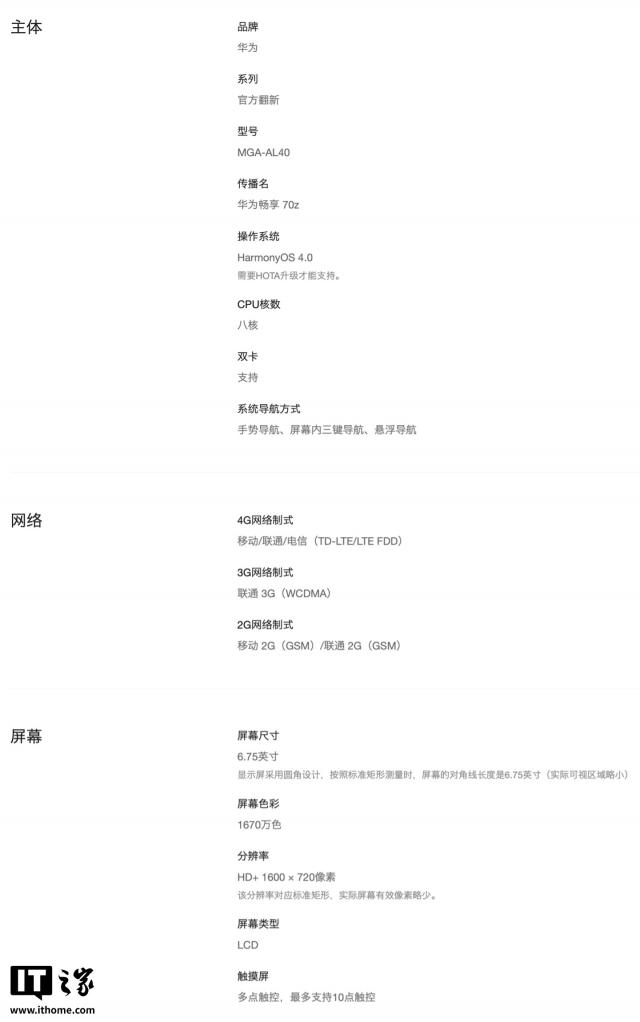 IT 世家 2 月 16 日消息,华为畅享 70z 官方翻新机现已上架华为商城 / 去年天猫,这台机器开始于去年。 2 月亮上市,选择麒麟 710A 4G Cpu,定价为 999 元起,IT 家庭整理市场价格如下: